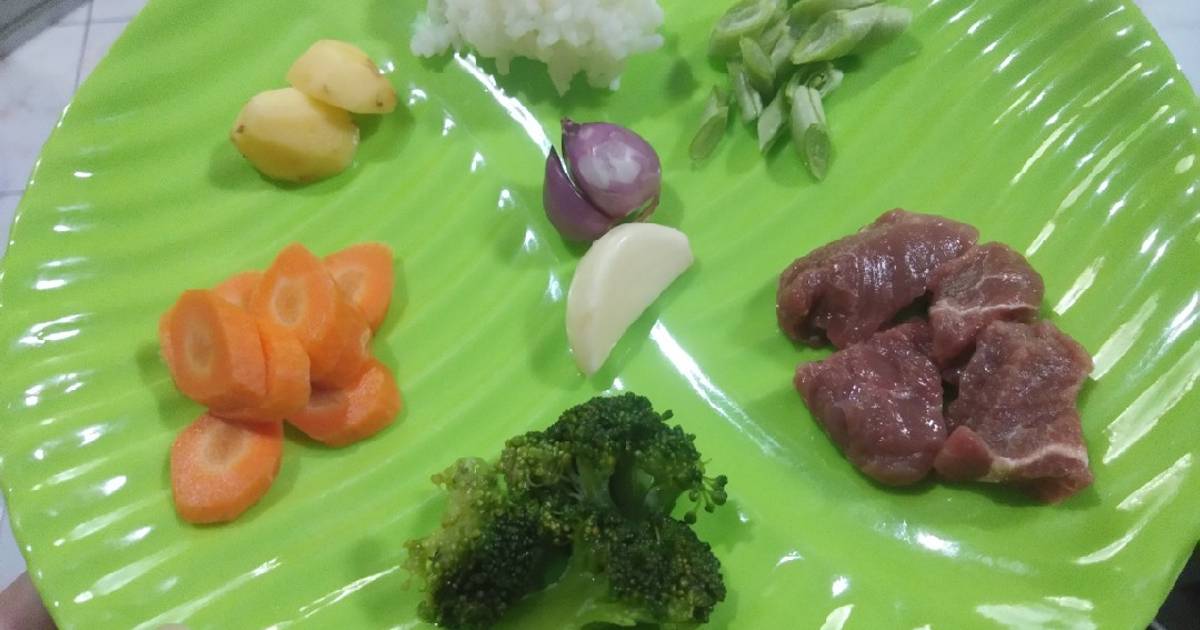 Akhirnya saya membuatnya sepanci di rumah. Potong seperti dadu kentan dan wortel. Bahan 500 grm kentang 2 bh wortel kecil 10 butir telur puyu 1 bh daun sop dan daun bawang ayam kampung secukupnya 1100. Tambahkan wortel, kentang, masak hingga wortel dan kentang empuk, setelah itu tambahkan tomat, pala, merica dan garam. 150 gram dada ayam fillet, potong sesuai selera.
